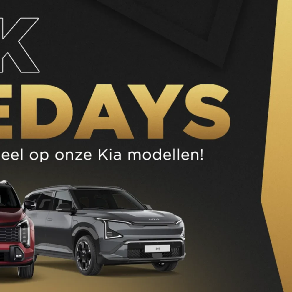 Bij Kia Kooijman zijn we er klaar voor: de BlackDrive Day Deals beginnen en lopen tot 30 november aanstaande. Dit is jouw kans om écht voordeel te pakken, want we hebben prijzen die je nergens anders ziet. Geen loze beloftes, maar echte deals.